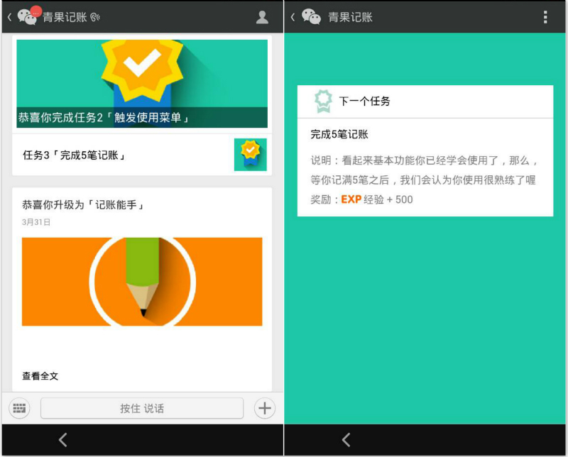 微信公众号「青果记账」想做说句话就能记账的记账本
