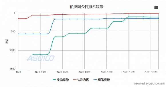 应用本身的关注度也随之提升。根据ASO100的数据,从7月16日零时开始,这款应用在iOS渠道上的社交免费榜排名上,已经从150名开外快速跃升到了前10名。