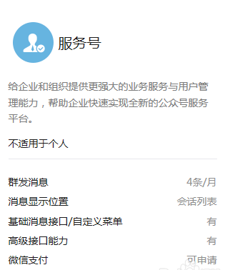 现在我们每天收到的消息推送一般都是订阅号,但是如果要特殊接口开发一些功能比如支付,那么就要选择服务号了。最本质的区别:可扩展性:服务号>订阅号;推送信息数量:订阅号>服务号。根据需要进行选择。一般服务号有很强大的数据库管理系统,一周能够推送一次消息,订阅号每天可以推送一次。看你自己需求。
